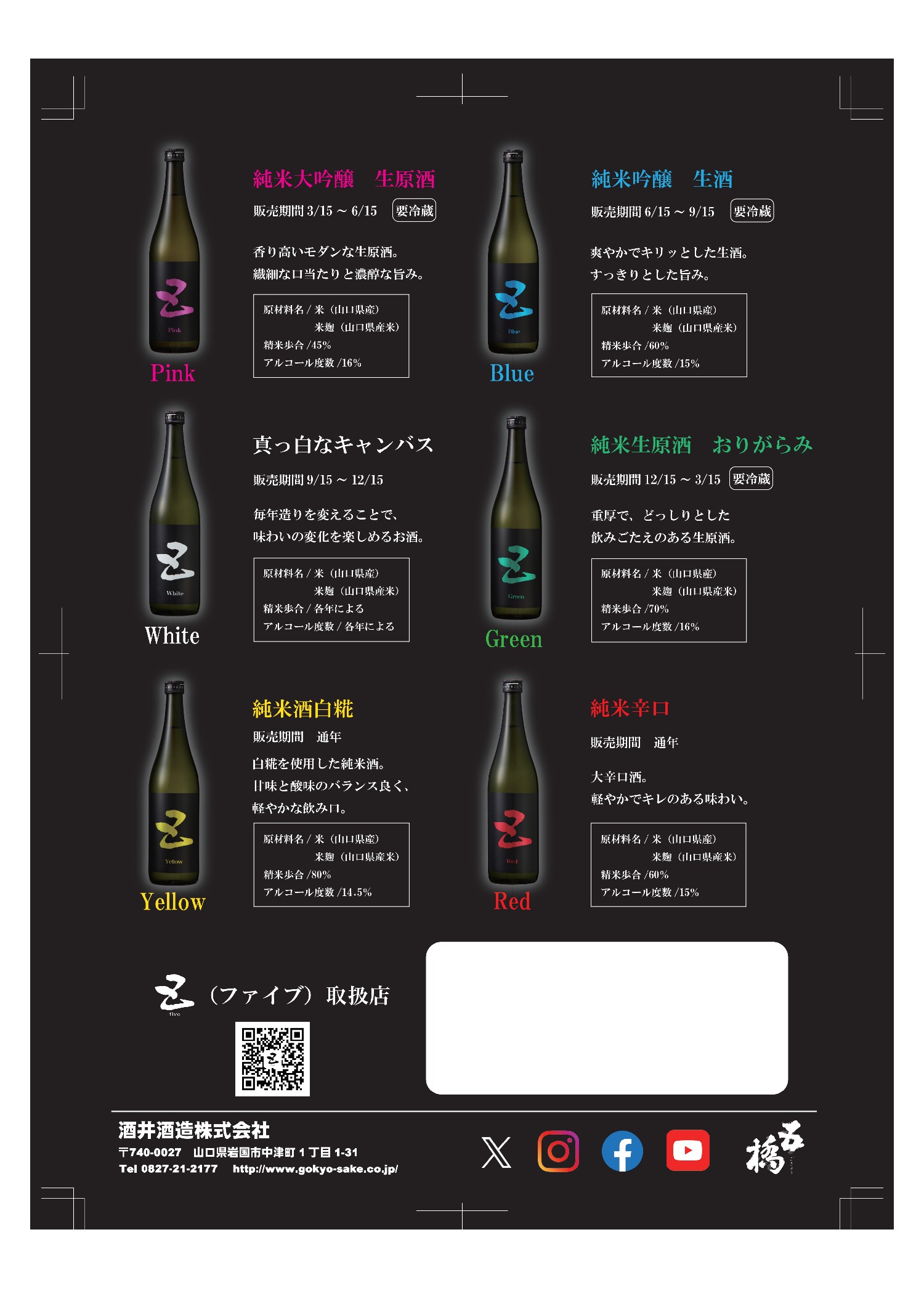 五(five)とは、6種類、ロゴカラーで酒質と季節感を演出しています。